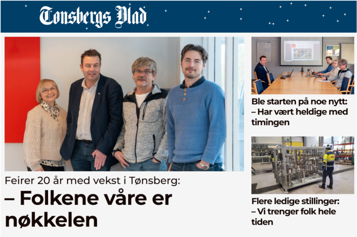Article in Tønsbergs Blad about NLI Elektrosystemer’s 20 years in the industry
