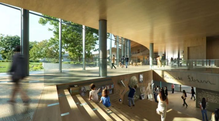 The library, which was designed by the Japanese architectural firm Kengo Kuma & Associates in collaboration with MAD architects, will not only function as a public library and service center, but also as an international dissemination arena for Henrik Ibsen and his poetry. The building will be ready for Ibsen’s 200th anniversary in 2028.